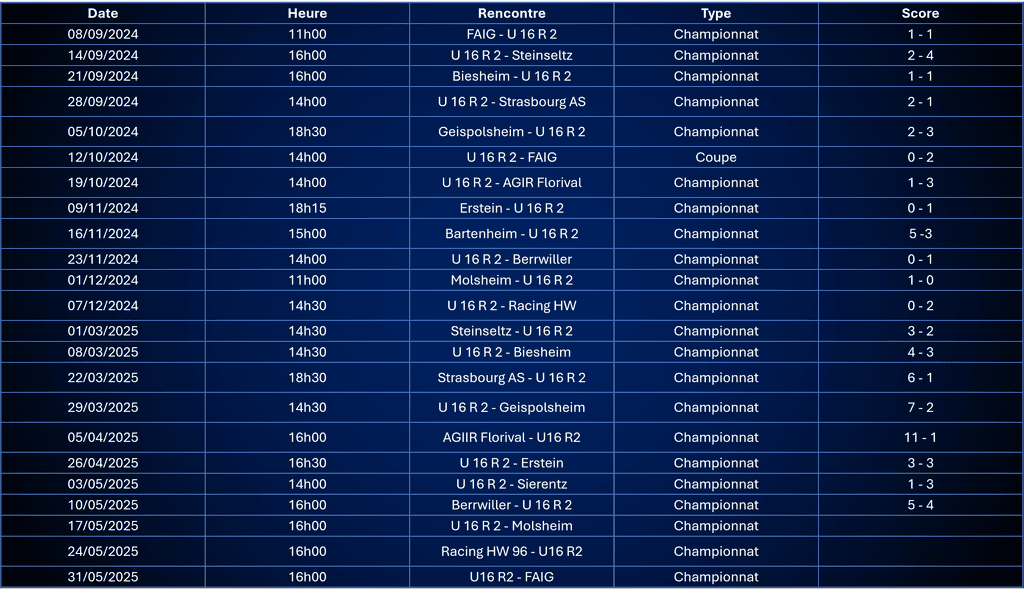 RESULTAT SAISON 2024/2025